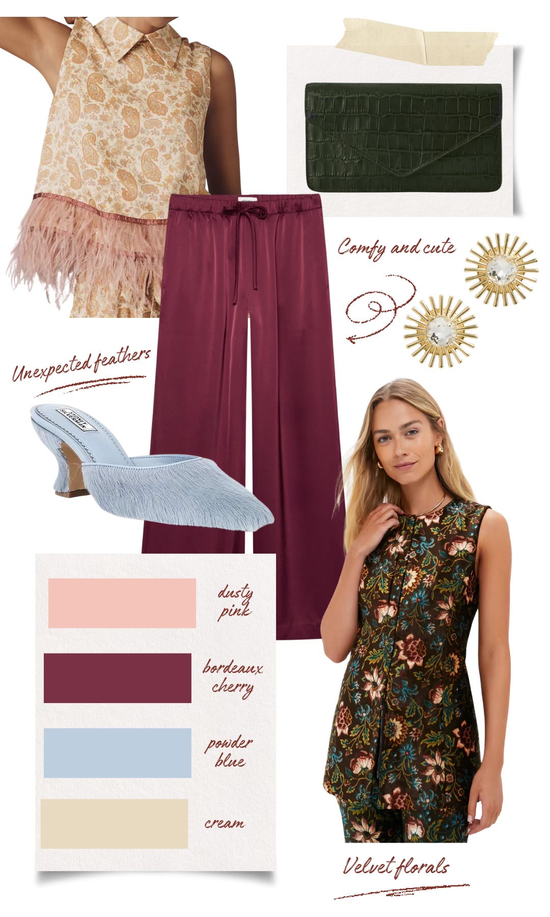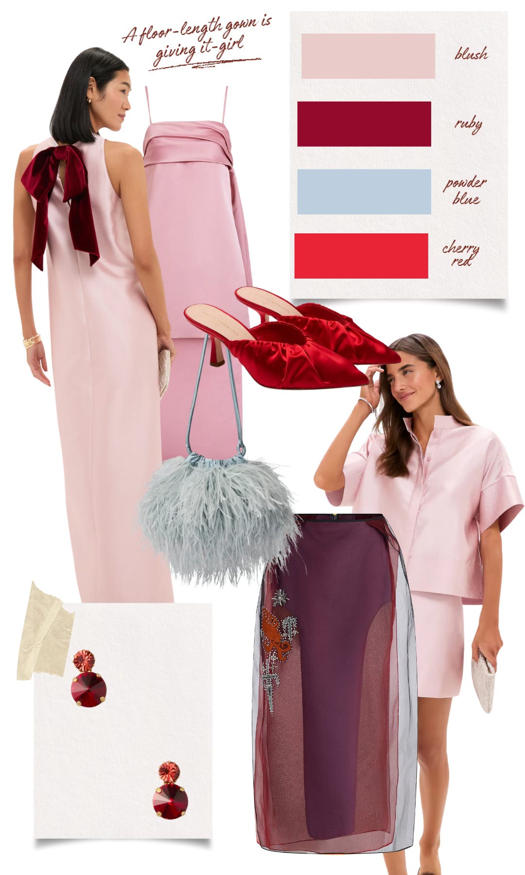 AB: There’s something so relieving about themed dressing. But year after year, even the best themes lose a bit of their sparkle. I’m feeling that this holiday season, so instead of reaching for the usual suspects sequins, rich jewel tones, and the obligatory bow-on-top, I’m going in a less obvious direction. That’s right: blush pinks, unexpected necklines, and the ever-groundbreaking FLORALS! I’m so excited about it I could shout it from the rooftops.