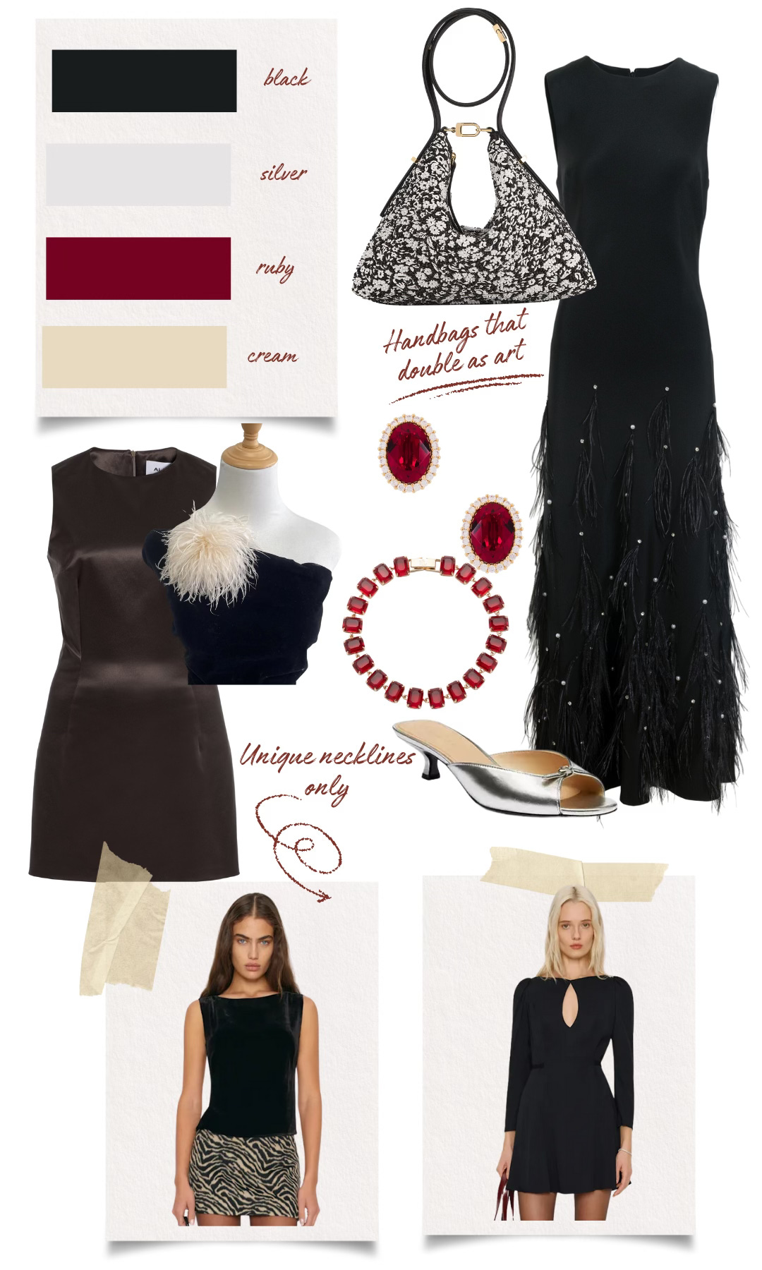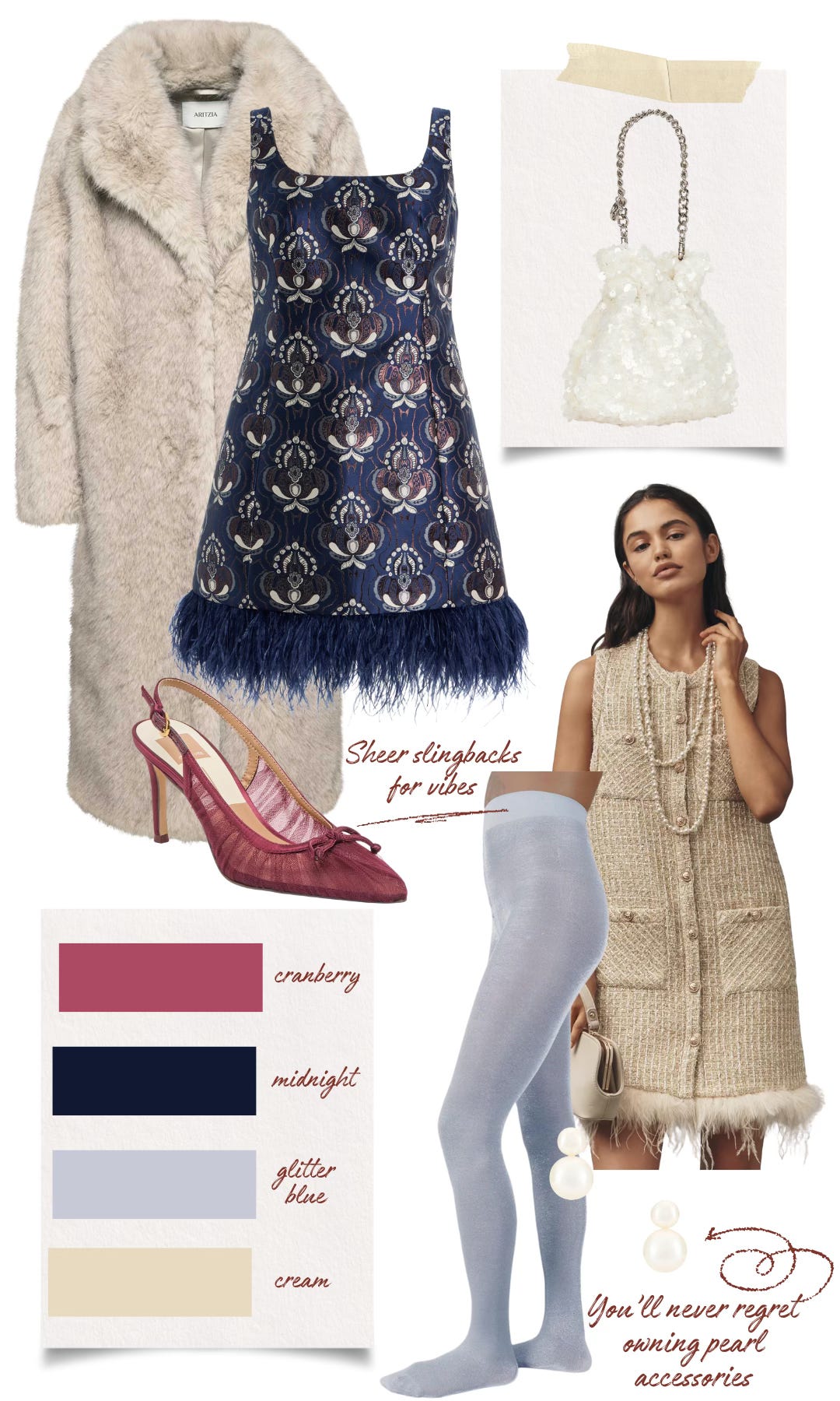 AB: I am also really vibing with the idea of pairing one of my closet hero pieces with something bolder. Mixing something I wear every single day with something that feels distinctly festive. Sometimes with holiday dressing, I get so swept up in the theme that I lose myself (melodramatic, yes, but true). I end up all dolled up in outfits I’m not even comfortable in and honestly, it shows. Don’t ask for the receipts. This entire thread is the essence.